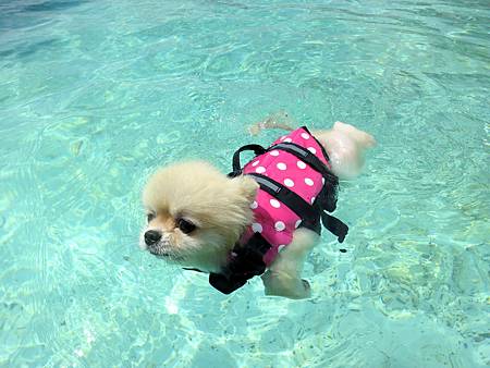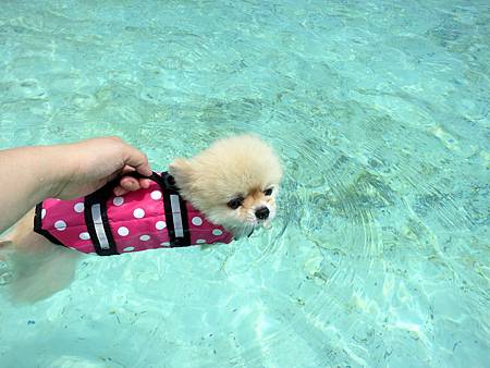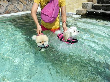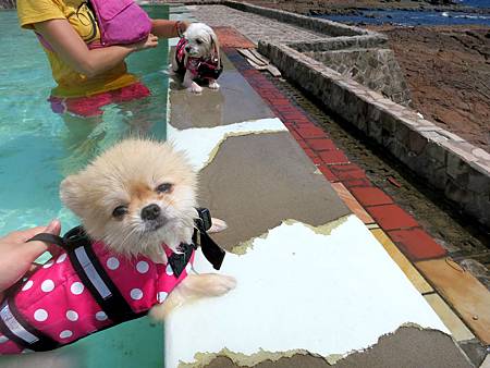 (註: 這個寵物專用海水泳池不用換泳衣, 穿一般衣物就可以下水, 記得帶換洗衣物更換)
