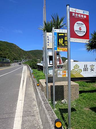 因為時間還夠, 我們決定繼續搭乘黃金海岸線順路去九份走走, 看好下班車時間 (假日約半小時發一班車), 就到剛剛下車站牌處等候, 沒多久車就來了, 出發~