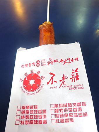 孔廟魅力商圈靠近孔廟這端口就會看到這間有名的不老莊藥膳香腸總店, 其實在尚未開始寫關於台南部落格之前, 爸爸的朋友就有送過他們的原味及辣味香腸給我們, 當時就覺得味道很特殊!不老莊不斷的研發新口味的香腸, 甚至還推出加入了水果的肉乾, 洋蔥貢丸等!
