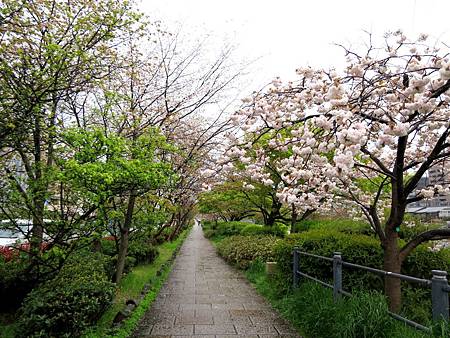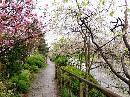 這時間上班族都還沒出門, 整條散步道都是我們的!而且很幸運的鴨川畔的櫻花還有不少依然盛開!