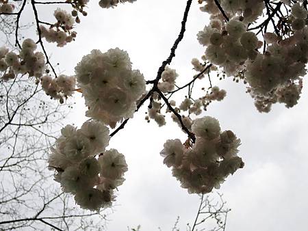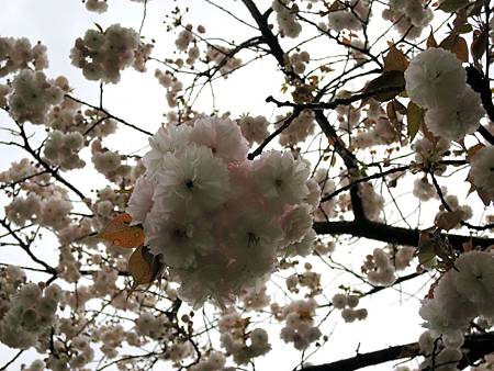 散步道旁的櫻花品種種類也不少, 像圖中這種淺粉色花球狀的櫻花到四月底應該都還看得到!