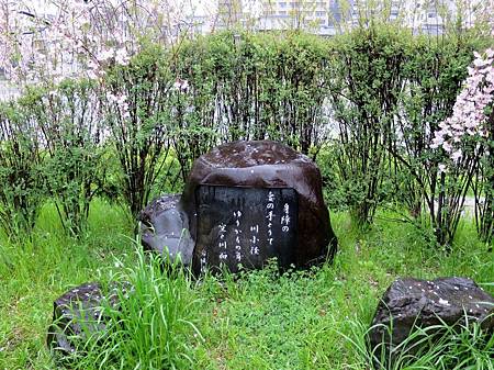 Kahi of Yoshii Isamu 吉井勇歌碑 (よしいいさむかひ), 這是位於 "祇園四条駅" 與 "清水五条駅" 鴨川畔散步道的另一顆吉井勇歌碑, "吉井勇" 是一位貴族出身的詞曲家及劇作家, 生於東京日本明治19年 (西元1886年), 晚年在京都渡過, 為了喜愛的京都創作了不少的作品。