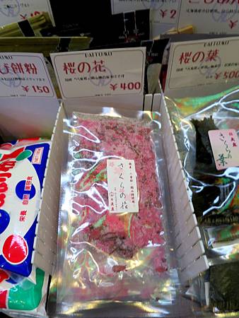 醃漬櫻花 ¥400 / 1包, 沒在這買, 後來在其他地方有買了一罐小罐的, 買回去炒飯用 (可跟青江菜及蛋炒入飯中, 不用再放鹽巴), 泡茶用!