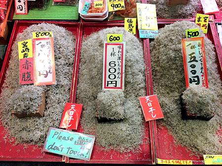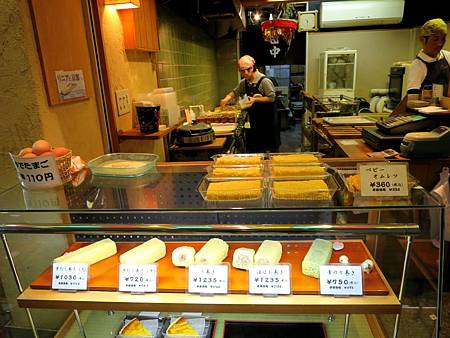 田中雞卵也是錦市場內有名的雞蛋店, 店內販售的玉子燒也是很有名氣, 只是可惜沒有賣小串讓光觀客可以嚐嚐味道!一般觀光客很難買一整塊帶著走一天...