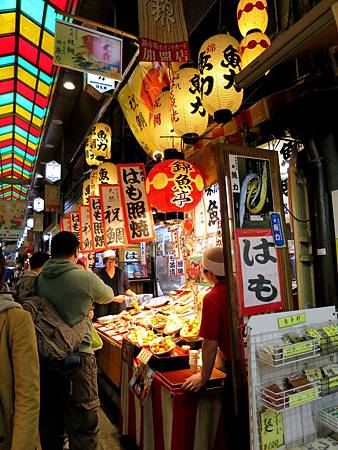 有著美味的京都廚房之稱的錦市場是一條狹窄的傳統市場購物街, 傳統及現代小吃美食聚集, 近年來成了全世界觀光客來京都必訪知景點之一!