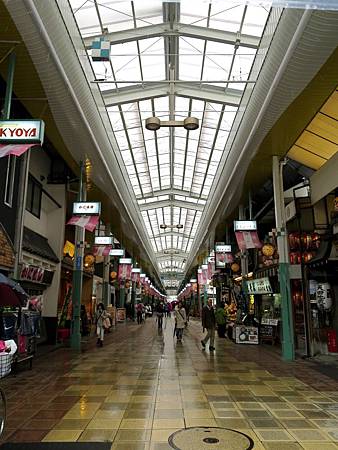 雖然外面下著雨, 但還好新京極通有設置屋頂遮蔽風雨, 是個適合人雨天來逛的區域, 這時有讓 Chloe 下來散步上廁所, 因為看到很多當地人因為下雨而帶狗在此散步!如果狗狗如廁要清理乾淨喔!