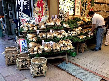 這是一間知名的京野菜特產專賣店, 春天有竹筍; 夏天有茄子; 秋天有松茸; 冬天當然就是白蘿蔔, 店內還有販售店家自製的醃蘿蔔!剛好遇到春天盛產竹筍, 又大又新鮮, 只可惜帶不回台灣... 用來煮竹筍炊飯一定很好吃!