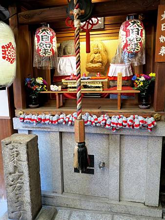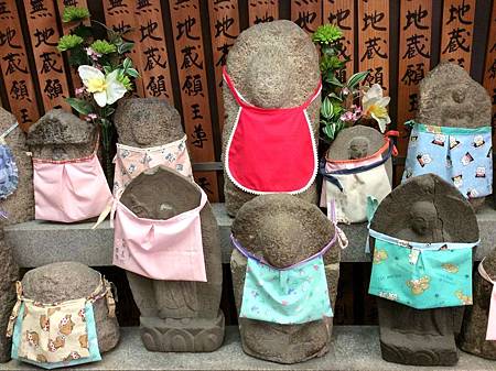 入口處地藏菩薩石像, 在日本若有孩子夭折, 會供養地藏菩薩, 所以看到地藏圍了一塊小布就是所供奉的早逝靈魂。