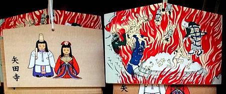 右邊是這裏有名的地獄救苦地藏繪馬, 圖中是彩色的, 如上圖也有黑白的可選, 左邊兩個娃娃的我猜有可以能是祈求緣分的繪馬!